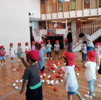 今日はみんなでダンシング玉入れ😊今回の勝負は引き分けでした😄
