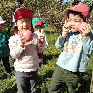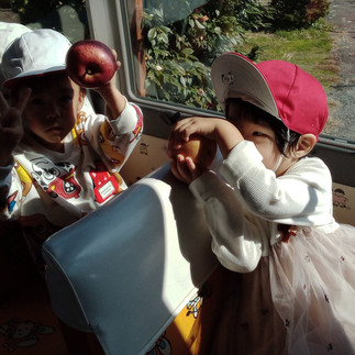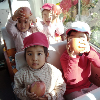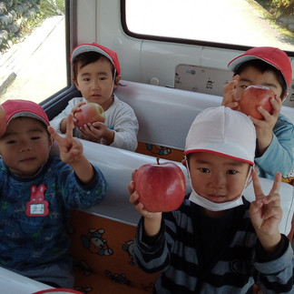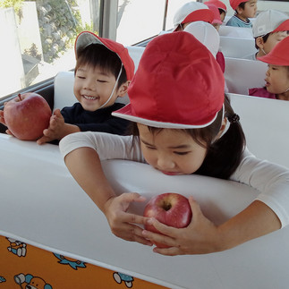 みんな自分で採ったりんごを大事に抱えていましたよ。帰りのバスで早く食べたーい😋のおともだちもでした。