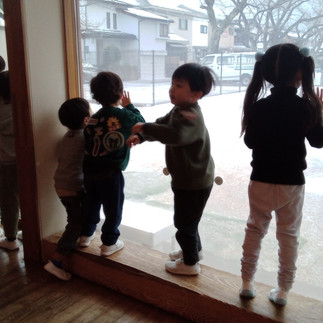窓にはりつきサンタさんを探していてとってもかわいかったですよ💕