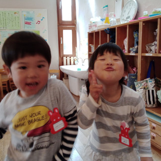お弁当の後はお部屋で遊びました。カメラを向けるとテンションアップで変顔披露のかわいいおともだちでした😁