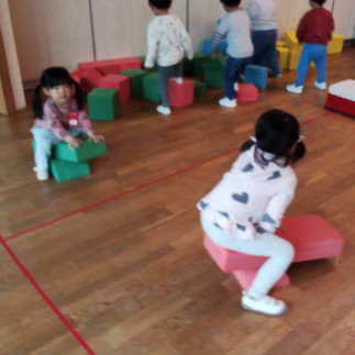 ホールでも遊びました。みんなでお約束を確認してから遊びました。きちんと並んで待ててました👍