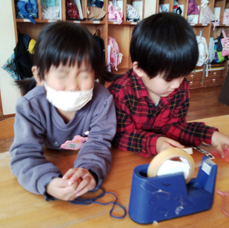 最近廃材制作にハマってるおともだち。しかし中にはきちんと作らず大量に持って帰るのを楽しんでるおともだちもいたので使い方をみんなで再確認。
