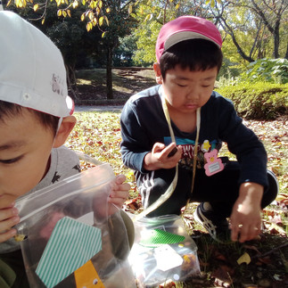 交流センターに着くと、どんぐりや木の枝などのたくさん拾いました。