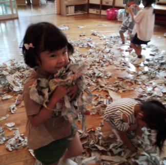 次の日も今日は新聞ビリビリ大会しないの?と聞くほど楽しかったようです。